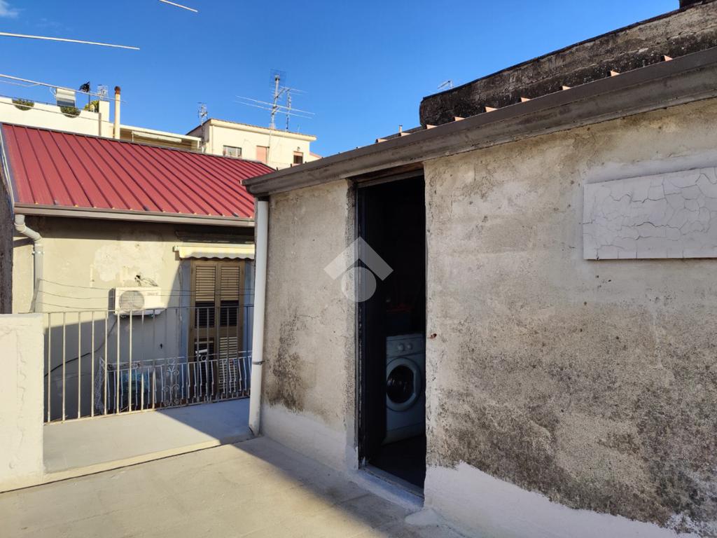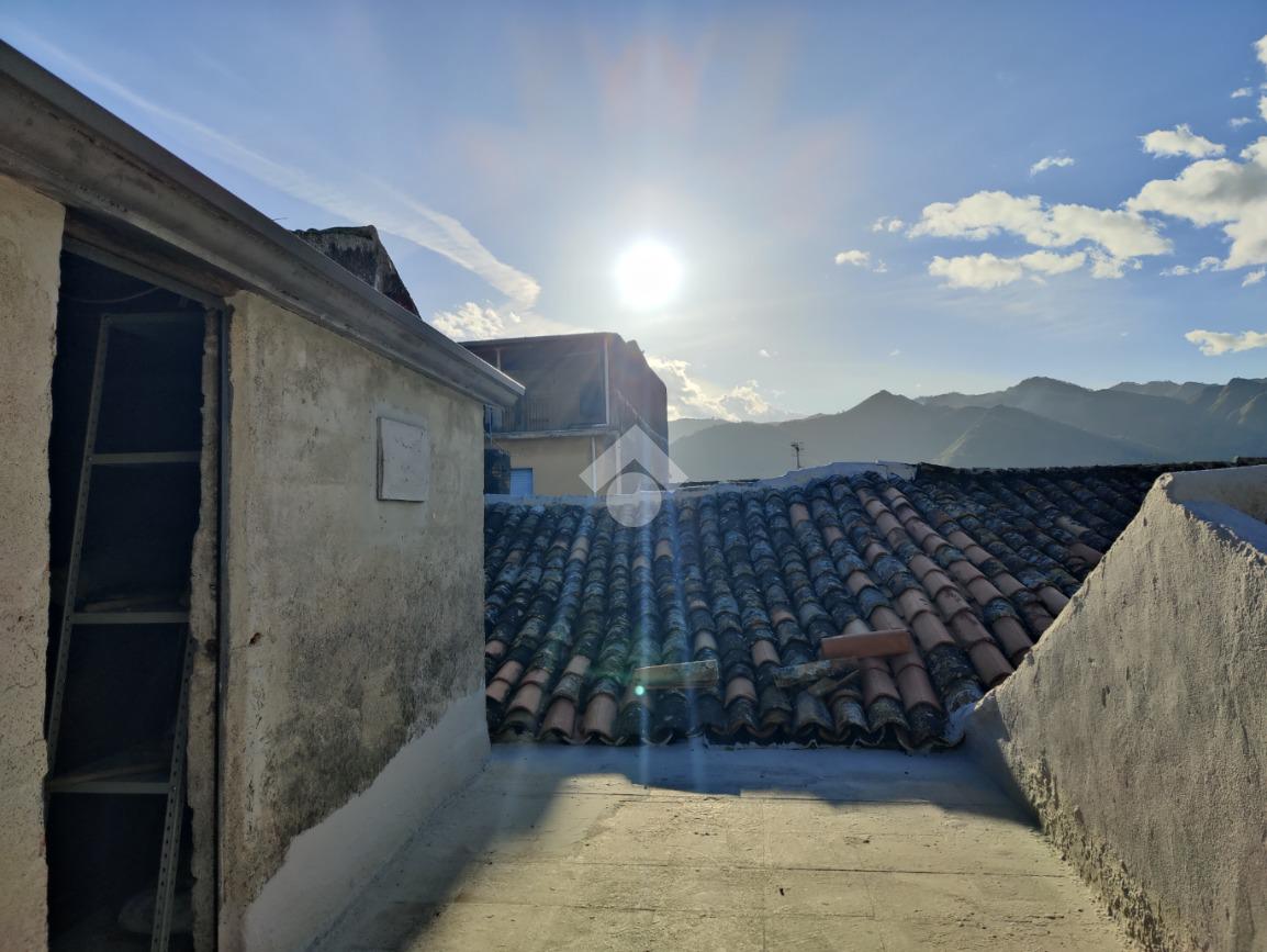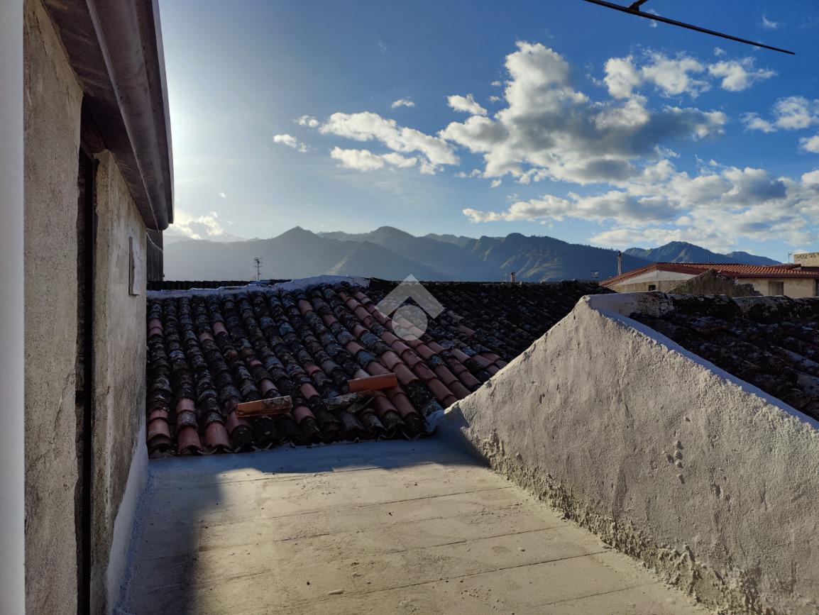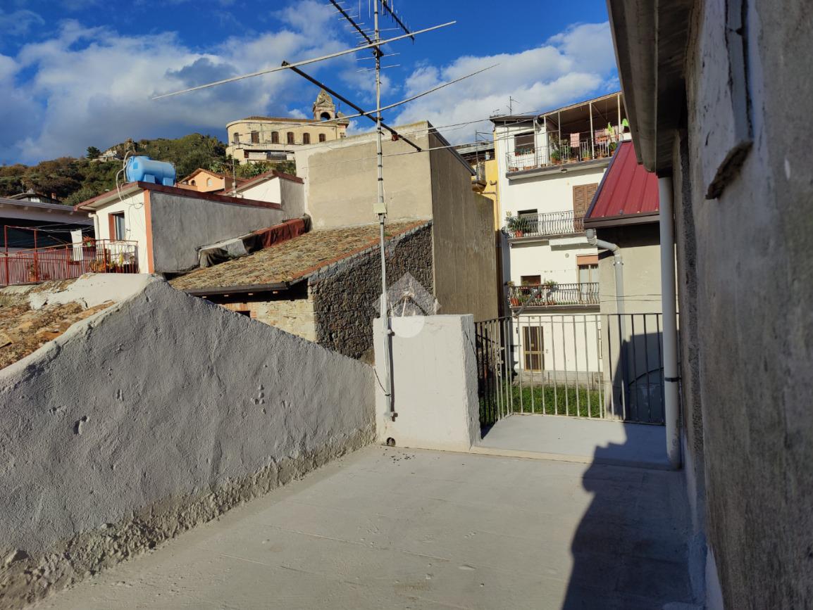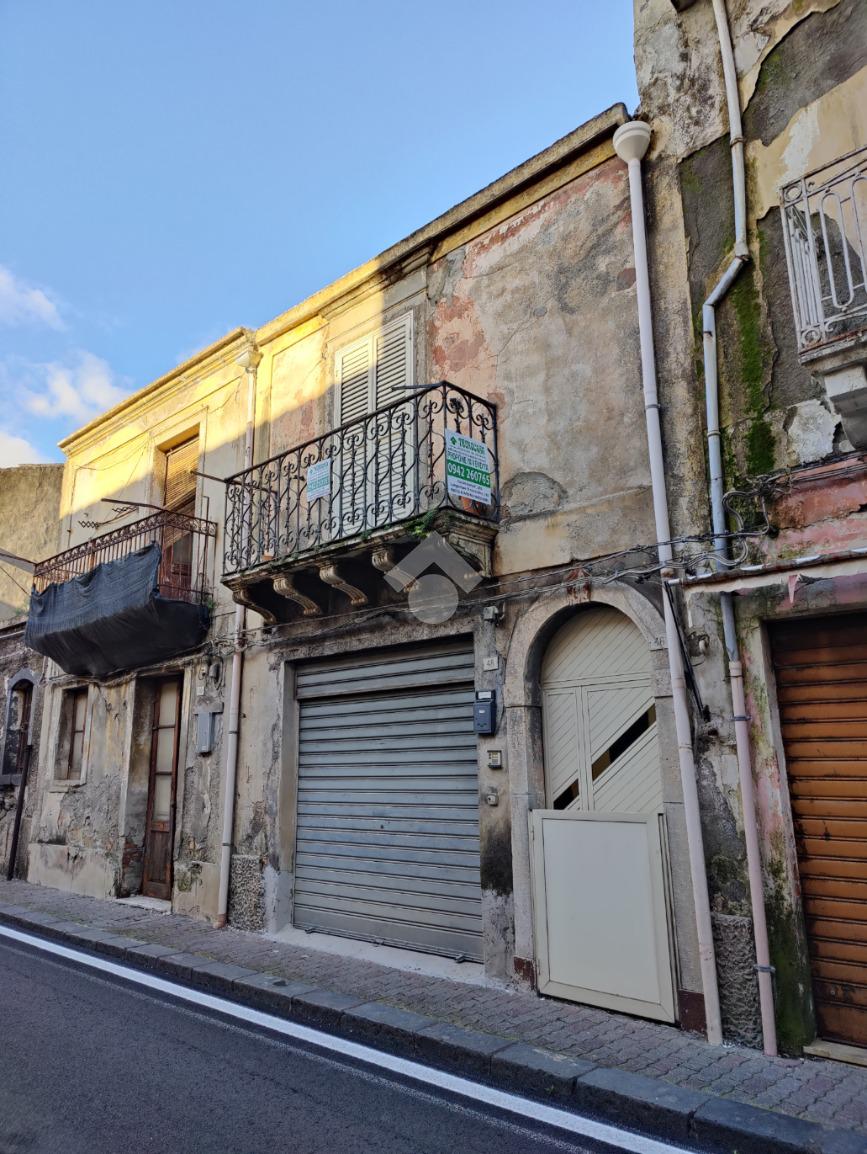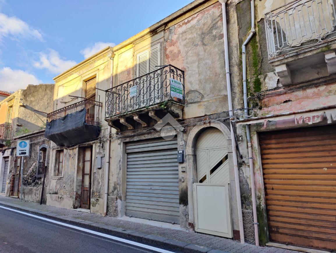 L'immobile proposto in vendita, si trova in via Regina Margherita, nel pieno centro del paese, dove sono presenti diverse attività commerciali. Si tratta di una casa indipendente, posta al piano terra, primo e copertuta a tetto e in parte terrazzo. Si entra dal piano terra, dove troviamo un unico garage doppio di 35 mq, che si collega con un locale deposito sul retro di 15 mq, con uscita dalla strada parallela via Nunzio Nasi; a seguire la scala interna ci porta al primo piano di 50 mq netti calpestabili, suddiviso in soggiorno/cucina con uscita sul balcone lato via Nasi, il servizio con doccia finestrato, e la camera da letto matrimoniale con uscita sul balcone lato strada primaria la via Regina Margherita, infine la scala porta fino al piano secondo dove troviamo un locale lavanderia di 5 mq, con uscita sul terrazzo panoramico vista Etna di 10 mq. Le condizioni interne ed esterne si presentano dicrete, è necessario effettuare dei lavori di ristrutturazione dal terrazzo sopra/tetto in quanto per una parte è soggetta ad infiltrazione. La soluzione si presta anche per chi desidera realizzare un'attività.