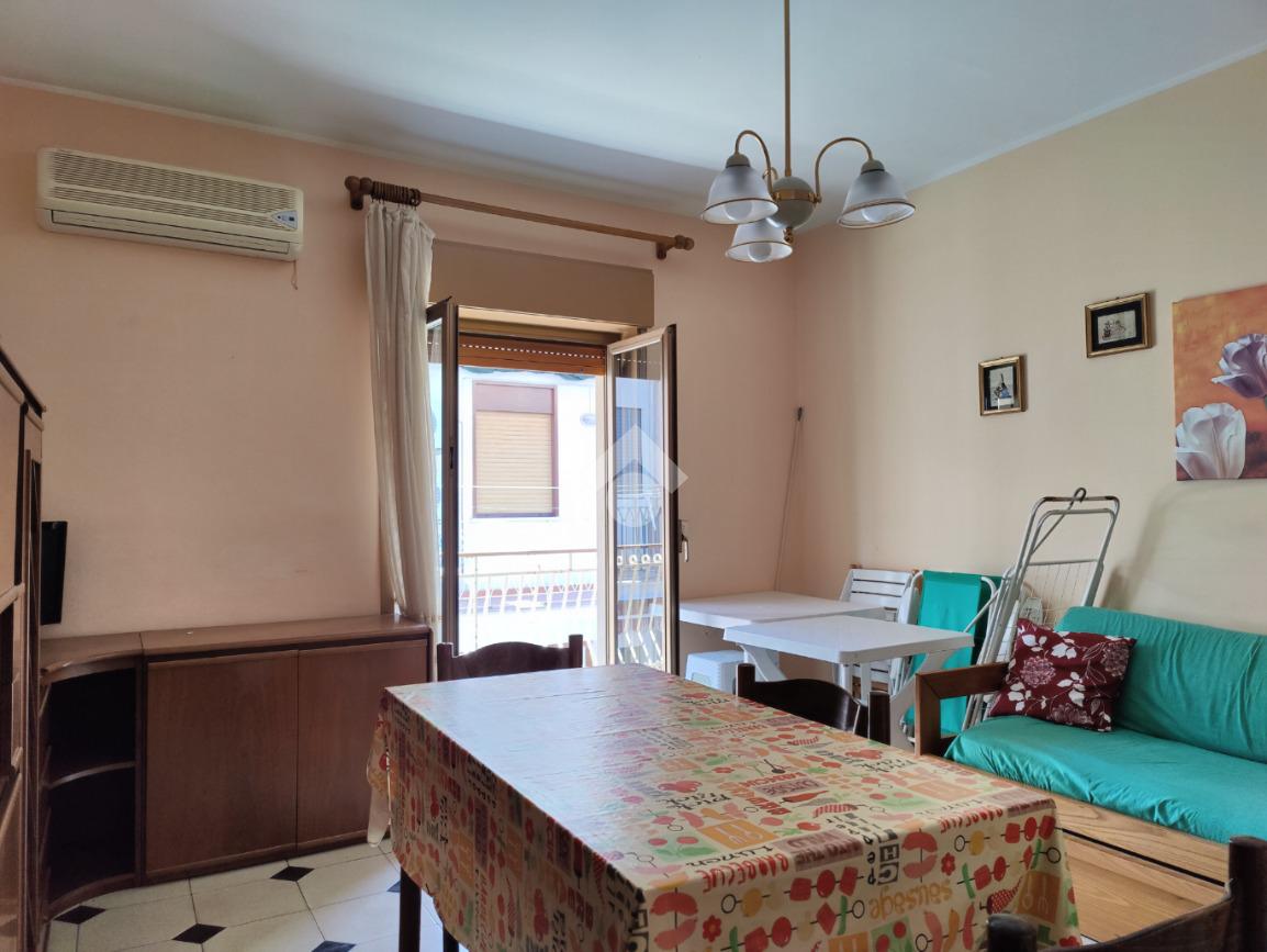 'L'immobile proposto in locazione è situato in via Ustica, al secondo piano di una palazzina di tre piani edificata circa negli anni '90, in un condominio di 11 unità abitative in cui l'ascensore non è presente. Si tratta di un ampio bilocale di 58 mq interni calpestabili, con ingresso su soggiorno fornito di divano letto e angolo cottura con uscita su balcone esposto ad ovest su strada, attrezzato di tenda da sole, a seguire dal disimpegno abbiamo una piccola lavanderia con lavatrice, un servizio con doccia non finestrato, e infine una camera da letto matrimoniale con uscita sullo stesso balcone.