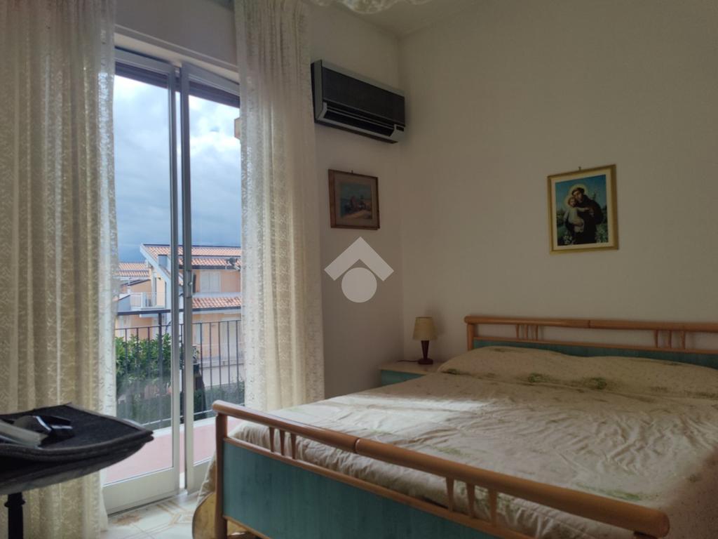 L’immobile proposto in locazione è situato all’interno di un condominio costruito negli anni 80’, la palazzina si sviluppa su cinque elevazioni fuori terra, con un prospetto esterno in buono stato. L’appartamento è un bilocale, al terzo piano con ascensore; è possibile usufruire di un posto auto libero all'interno del cortile condominiale. Internamente misura 38 mq netti calpestabili, con ingresso su zona giorno finestrata con angolo cottura a gas con bombola, a seguire un disimpegno da cui si accede ad un servizio con doccia finestrato e infine ad una camera da letto matrimoniale con uscita sul terrazzino esposto ad sud-ovest con scorcio vista Etna. Le condizioni interne si presentano buone, con impianto idrico ed elettrico funzionanti, fornito di due climatizzatori caldo/freddo, pavimentazione in ceramica, gli infissi in alluminio monovetro e avvolgibili. L'appartamento viene locato completo di arredamento, ed oltre al canone mensile di locazione, bisognerà versare ulteriori 50 euro mensili per le spese di condominio, utenza idrica e tassa rifiuti. E' da considerarsi a parte l'utenza elettrica.