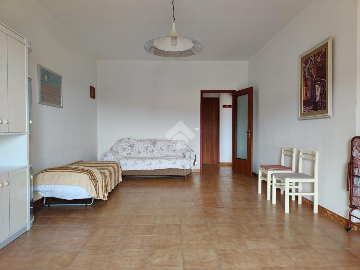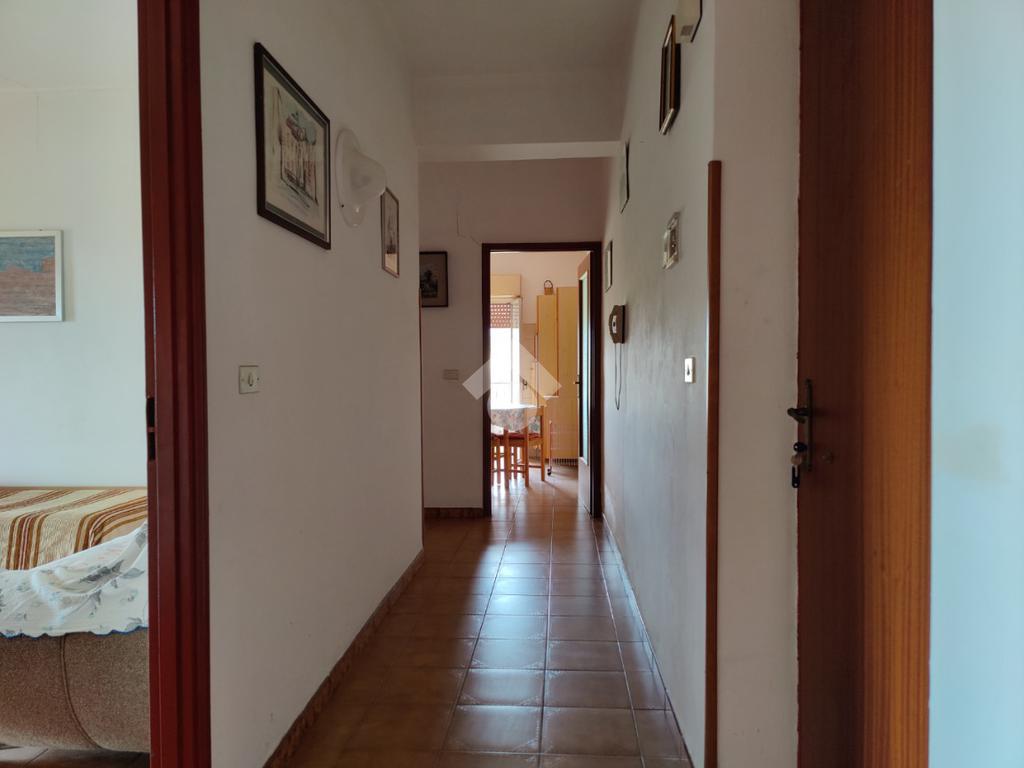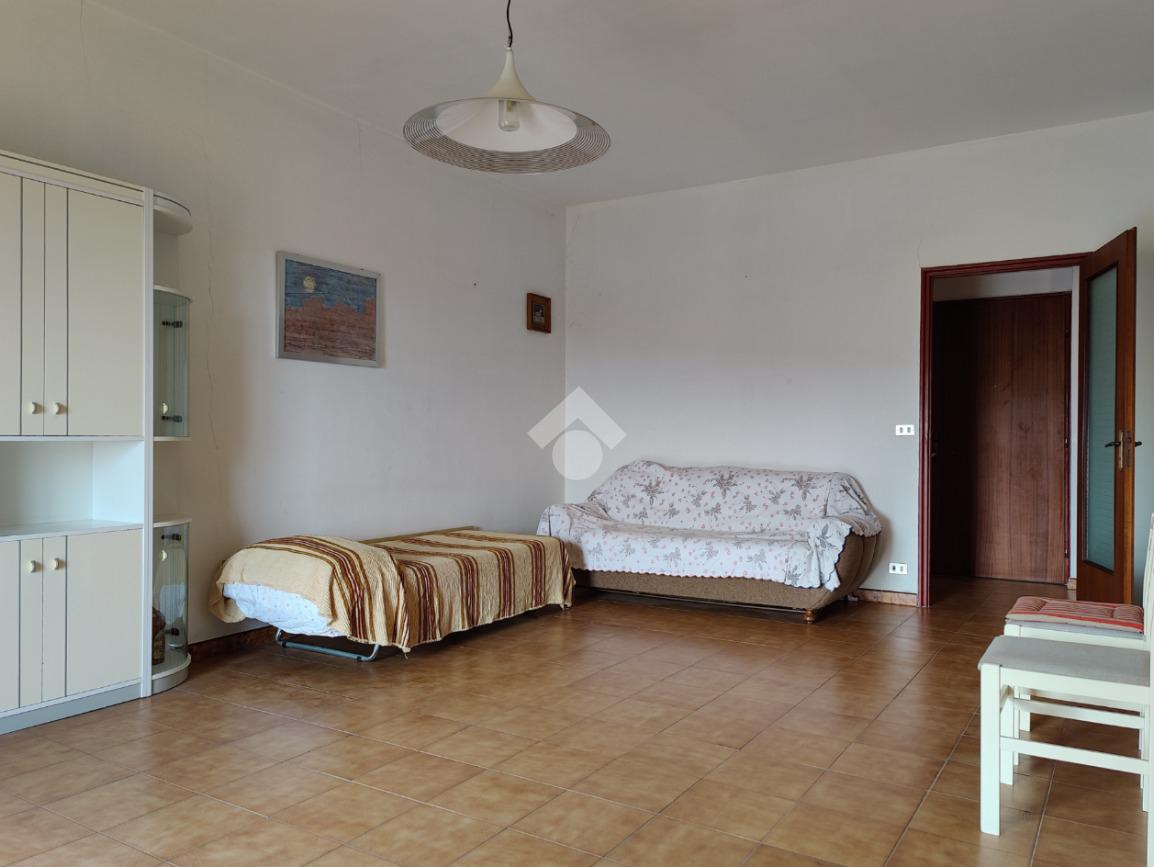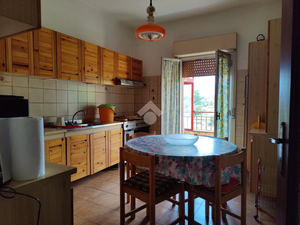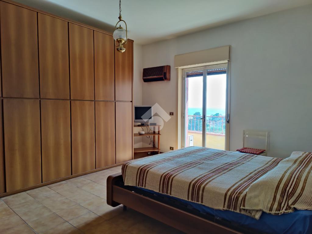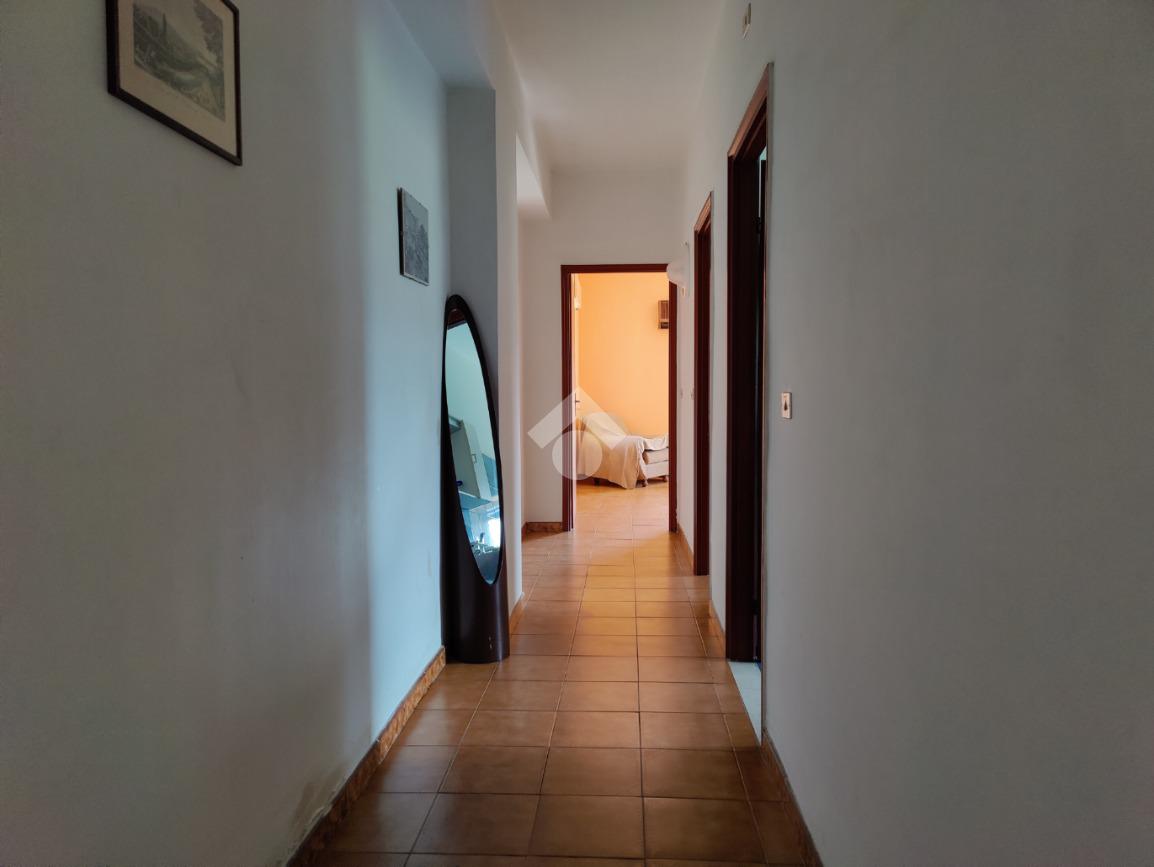 L’appartamento è situato all’interno di una palazzina di quattro piani edificata negli anni ’80, si presenta in condizioni trascurate e l’intero prospetto esterno è da rifare, non è presente l’ascensore e le spese condominiali sono contenute in quanto autogestite dai condomini; la casa è posta al secondo piano, i mq calpestabili misurano 117 mq, l’ingresso è su corridoio, da cui si accede ad una prima camera da letto matrimoniale con balcone e con bagno in camera non finestrato dotato di doccia, a seguire un ampio soggiorno con uscita su balcone angolare esposto ad est con vista mare, a seguire una cucina abitabile esposta a sud con balconcino e lavabo, un servizio con vasca finestrato, una cameretta finestrata e un’altra camera matrimoniale con uscita su balcone lato est. L’appartamento si presenta allo stato originario, gli impianti idrico ed elettrico funzionanti ma da rivedere, gli infissi in alluminio mono vetro con avvolgibili, pavimentazione in ceramica bianca. Completa la vendita una cantina di proprietà esclusiva di 9 mq al piano terra e l'arredamento.