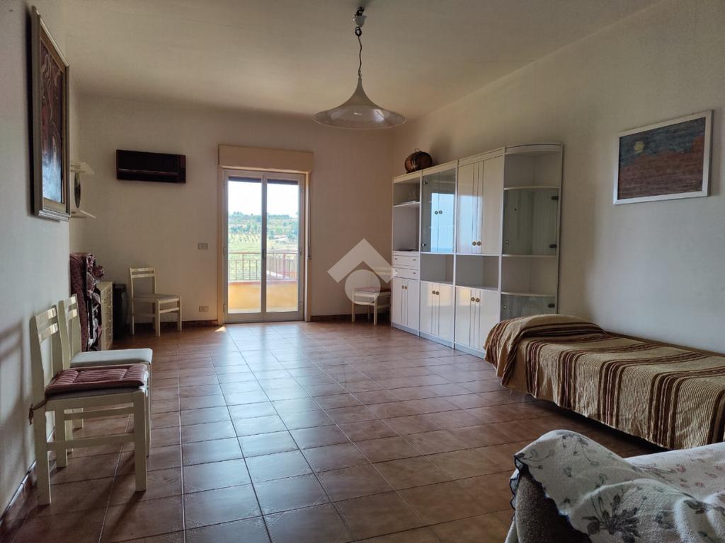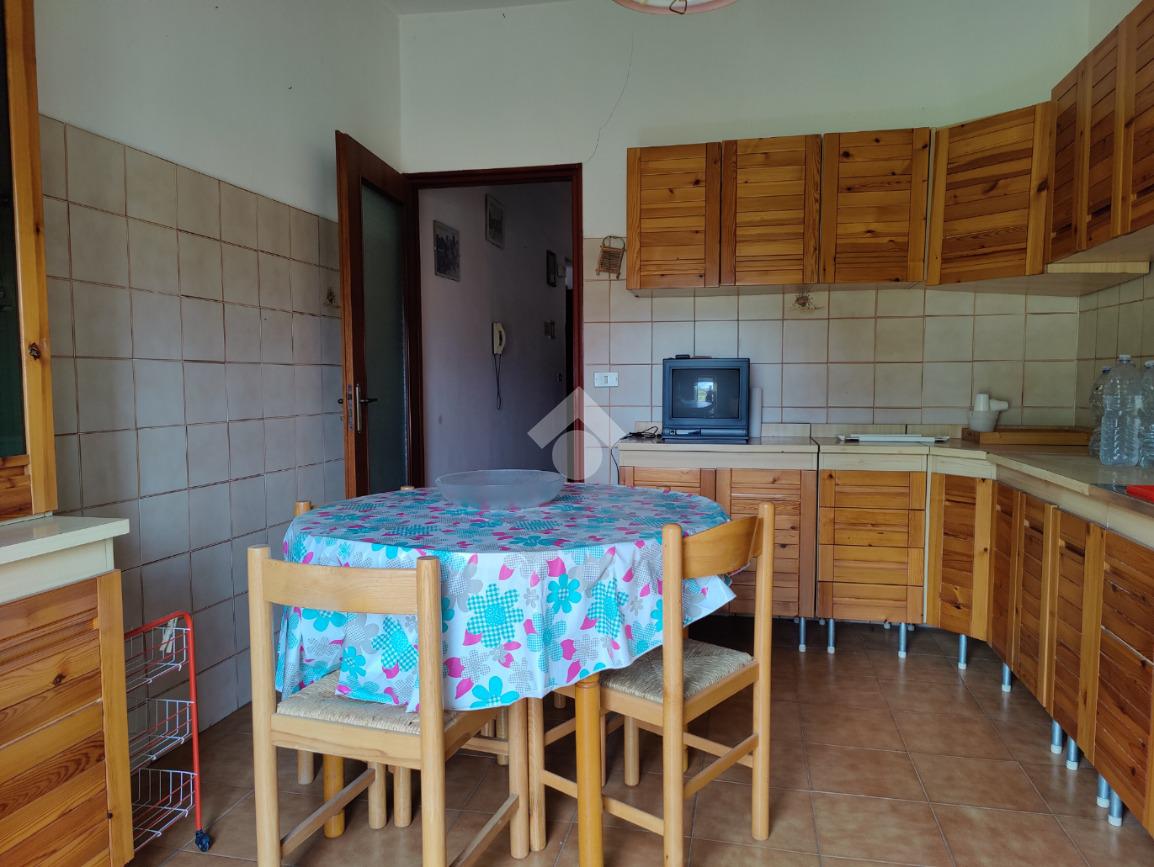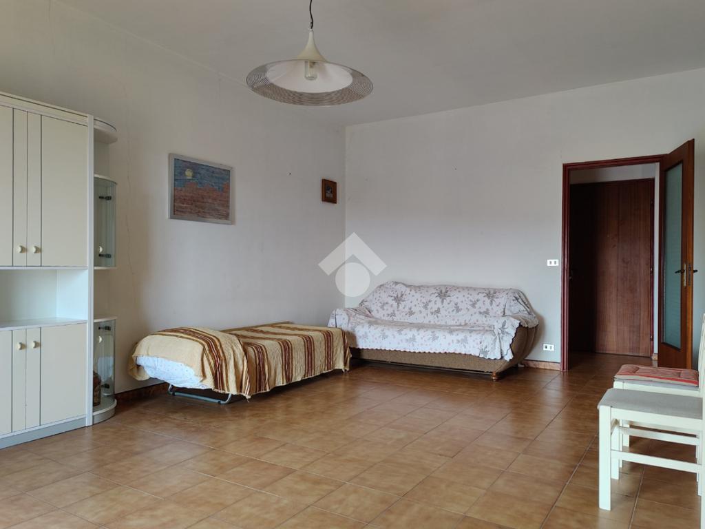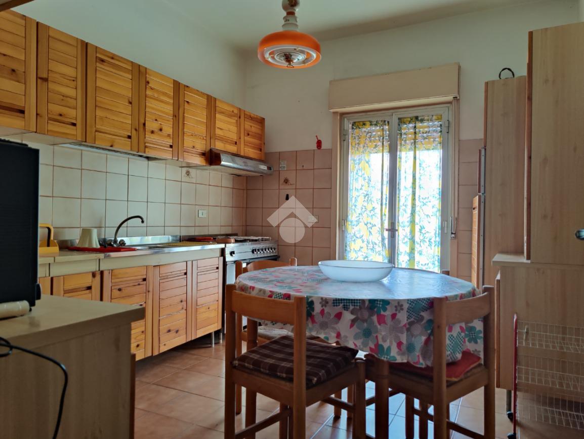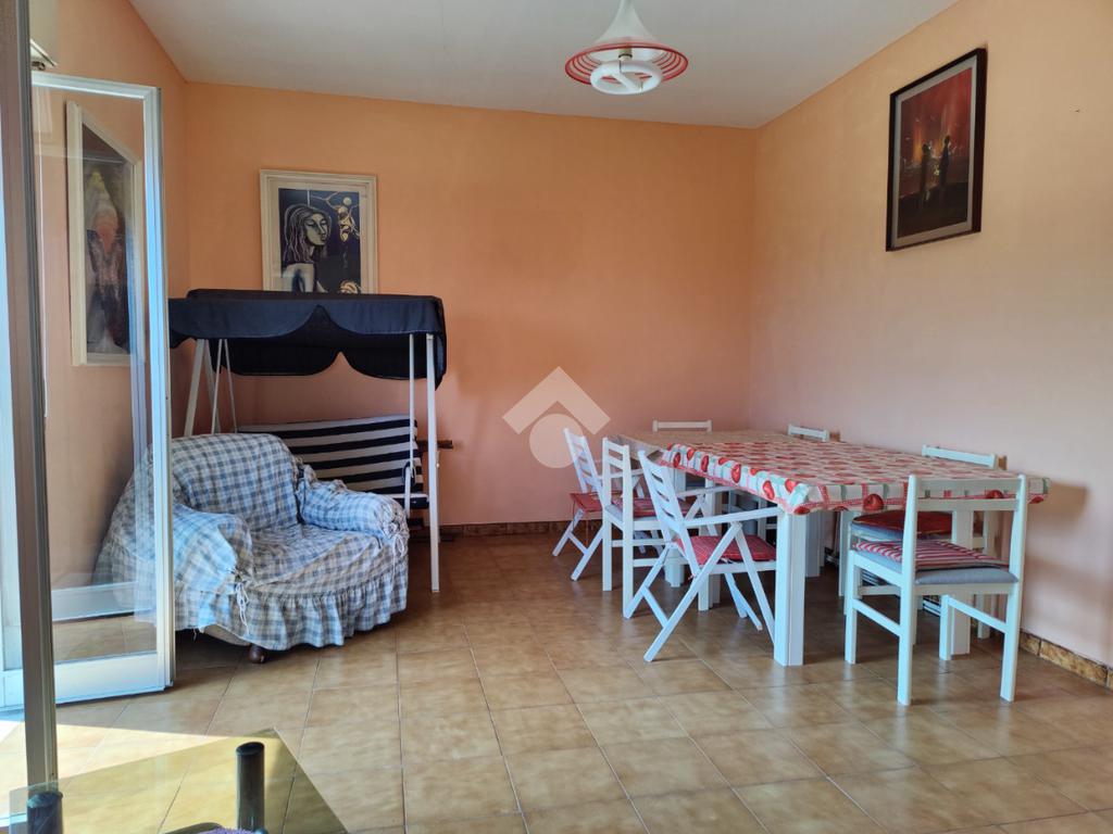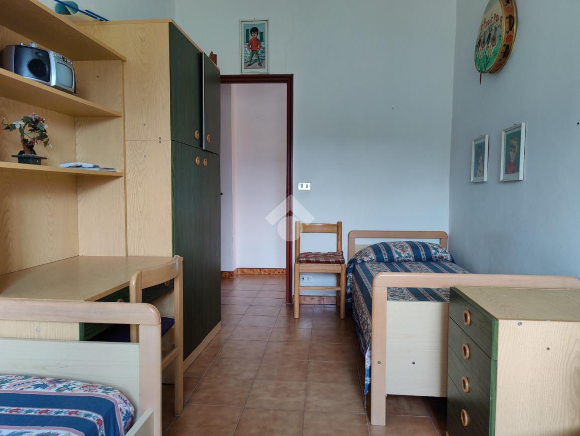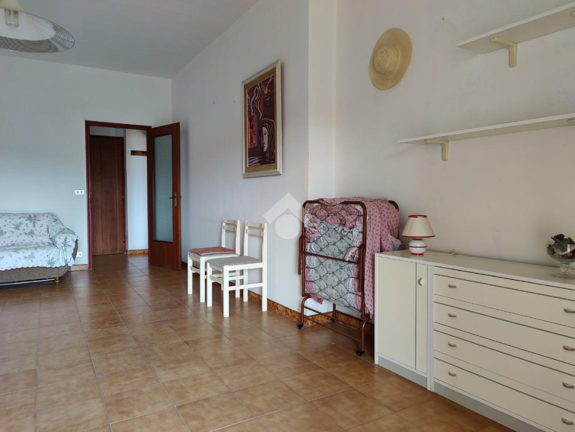 L’appartamento è situato all’interno di una palazzina di quattro piani edificata negli anni ’80, si presenta in condizioni trascurate e l’intero prospetto esterno è da rifare, non è presente l’ascensore e le spese condominiali sono contenute in quanto autogestite dai condomini; la casa è posta al secondo piano, i mq calpestabili misurano 117 mq, l’ingresso è su corridoio, da cui si accede ad una prima camera da letto matrimoniale con balcone e con bagno in camera non finestrato dotato di doccia, a seguire un ampio soggiorno con uscita su balcone angolare esposto ad est con vista mare, a seguire una cucina abitabile esposta a sud con balconcino e lavabo, un servizio con vasca finestrato, una cameretta finestrata e un’altra camera matrimoniale con uscita su balcone lato est. L’appartamento si presenta allo stato originario, gli impianti idrico ed elettrico funzionanti ma da rivedere, gli infissi in alluminio mono vetro con avvolgibili, pavimentazione in ceramica bianca. Completa la vendita una cantina di proprietà esclusiva di 9 mq al piano terra e l'arredamento.